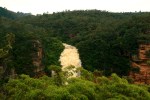 Als wir uns danach dem eigentlichen Wasserfall näherten standen dort schon einige Polizeiautos und es herrschte hektisches Treiben. Was war passiert? Ein Wanderer hat vor dem einsetzen des Regens das Flussbett überquert und saß nun auf der anderen Seite des Tals fest. Nach dem Regen hat sich der Wasserlauf zu einem reißenden Fluss verwandelt und eine Rückkehr war unmöglich. Ein Hubschrauber kreiste auch schon über uns und hielt Ausschau nach noch mehr eingeschlossenen Wanderern. Der Park wurde dann auch geschlossen und von der Polizei geräumt. Unser Glück war allerdings, dass wir somit den Wasserfall bestaunen konnten, welcher ohne vorherigen Regen wohl nicht so gewaltig gewesen wäre. Was aus dem Armen von der Außenwelt abgeschlossen Wanderer geworden ist, wissen wir leider nicht.