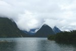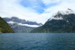 An der höchsten Stelle des Passes angekommen erwartete uns der über 1km lange Homer Tunnel, welcher uns auf die andere Seite des Berges bringen sollte. Da sah aber das Wetter leider nicht besser aus, sondern fast noch schlimmer. Hmm dachten wir uns was nun? Also sind wir erstmal in die Touristeninfo, um den Wetterbericht zu erfahren. Leider sah dieser für die nächsten Tage noch schlechter aus… Komischerweise hatte wohl der Wettergott ein Auge auf uns beide geworfen und unsere betröppelten Gesichter gesehen, denn plötzlich ging die Wolkendecke auf und ein Sonnenstrahl lugte hervor. Kurzerhand schrieben wir uns für die 12.30 Uhr Tour ein, denn welch andere Chance hätten wir gehabt. Der Oberknaller war noch, dass wir unter den vielen Anbietern den billigsten gefunden hatten und das Boot obendrein fast leer war. Wir standen 2 Stunden am Bug, ließen uns den Wind um die Nase wehen und genossen diese gewaltige Natur – einfach wunderschön!
