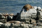 Weiter entlang der Ostküste besuchten wir noch eine Seehundkolonie und deren „Kindergarten“. In den bergigen Wäldern an der Küste bilden sich Wasserfälle und Flussläufe die ins Meer münden. Wenn die Mütter im Meer nach Nahrung suchen vertreiben sich die Jungen hier liebevoll „pups -junge Hunde“ genannt, die Zeit mit herumtollen und spielen in den Bachläufen. Dabei überwinden sie mehrere Pools und Felsen und einige kommen sogar bis zum Wasserfall. Hier verbringen sie geschützt ihre Kindertage und wandern nur zum Milch trinken zurück zur Mutter an die Küste.