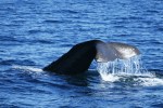 Der Wal schwamm einige Minuten an der Oberfläche und holte tief Luft, um sie dann wieder in einer Fontäne auszustoßen. Aber der beste Moment ist, wenn er seinen letzten tiefen Atemzug nimmt, senkrecht abtaucht und sich dann seine Schwanzflosse zeigt. Die Fotoapparate liefen heiß und jeder an Bord hatte ein Schmunzeln im Gesicht. Insgesamt durften wir drei Wale auf unserer Tour bestaunen.