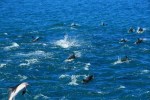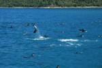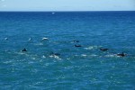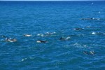 Da uns noch etwas Zeit blieb hielt die Crew noch Ausschau nach Delfinen. Dazu mussten wir aber erst einmal wieder unter Deck um volle Fahrt aufzunehmen. Nach einer Weile, hatten sie wohl ein paar gesichtet. Doch als wir wieder an Deck durften, standen wir quasi in einem „Meer von Delfinen“ und trauten unseren Augen nicht. Es waren mindestens 200 Stück die um unser Boot schwammen, sprangen oder einfach nur verrückt spielten. Da hat die Dame aus der Touristeninfo nicht übertrieben. Dieser Tag gehört auf jeden Fall mit zu den besten unserer gesamten bisherigen Reise!