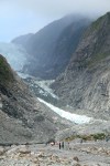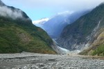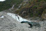 Am Nachmittag sind wir dann am Fox Gletscher angekommen und da der Regen etwas nachließ entschlossen wir uns zu einer Wanderung bis an die Gletscherkante. Leider überraschte uns während der Wanderung ein weiterer Regenguss und plötzlich standen wir da, nass bis auf die Haut… (Max Herre läßt grüßen) 😉 Da man allerdings nicht jeden Tag die Chance hat, so nah an einen Gletscher zu kommen blieb uns nix anderes übrig als weiterzulaufen. Nach 2 Stunden kamen wir tropfend am Camper an und hatten nun ein Problem! Wie sollten wir die ganzen Sachen wieder trocken kriegen? Da mußte dann die Gott sei dank reparierte Lüftung dran glauben. Dieser Prozess zog sich allerdings über 2 Tage hin… 😦
