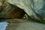 Zunächst sind wir zur „Waipu Cave“ gefahren, einer Sandsteinhöhle im Hinterland. Das tolle hierbei war, dass man diese Höhle komplett auf eigene Faust erkunden kann ohne Eintritt zahlen zu müssen und dabei noch Glühwürmchen sehen kann. Wow, das wollten wir uns auf keinen Fall entgehen lassen. Dumm nur, dass eine unserer zwei Taschenlampen vorher den Geist aufgegeben hat. Egal eine tut es auch dachten wir uns, wenn wir immer schön Händchen halten und uns nicht verlieren 😉 an der Höhle angekommen waren wir echt die Einzigen, die vor Ort waren. Also nix wie rein… Wir wagten uns ca. 100 m in die Dunkelheit und passierten dabei riesige Stalaktiten, Hohlräume und eine Quelle. Als wir dann unsere Taschenlampe ausmachten hat es überall geleuchtet. Was für ein magischer Anblick – ein Sternenhimmel aus Glühwürmchen. Viel weiter trauten wir uns dann aber doch nicht mehr mit unserer mickrigen Funzel. Es wurde immer unwegsamer und auch feuchter, so dass wir umkehrten.