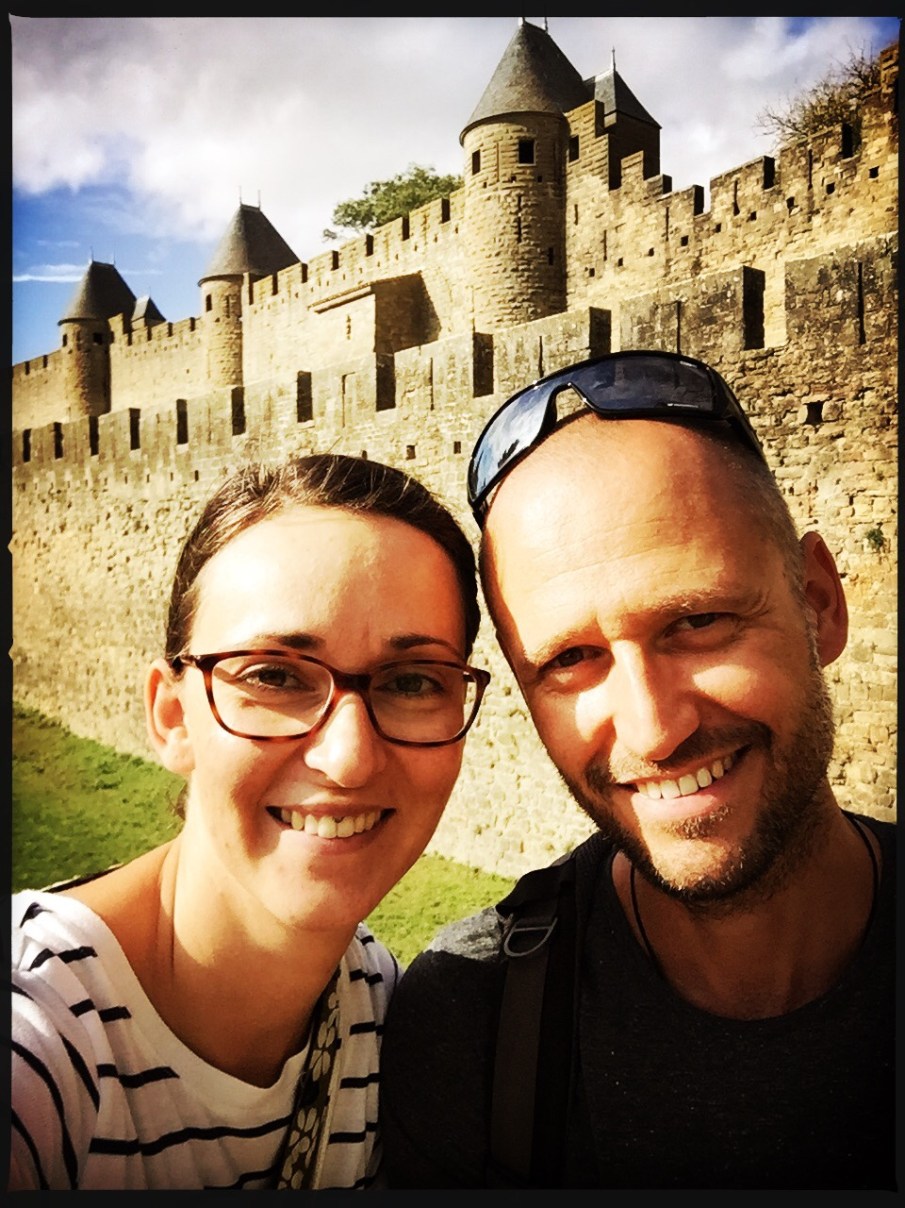 Es folgten wieder zwei Tage Regen bis wir schließlich in Carcassonne ankamen. Die mittelalterliche Festung, thronte über der Stadt und wir statteten ihr auch gleich einen kleinen Besuch ab. La Cité war super voll und bestand auf den ersten Blick eigentlich nur aus Restaurants und Souvenirshops… etwas enttäuschend. Da hat uns Pérouges besser gefallen, denn da hatte man glatt noch das Gefühl, dass gleich ein Burgfräulein oder ein Ritter vorbeigeritten kommt. 😉