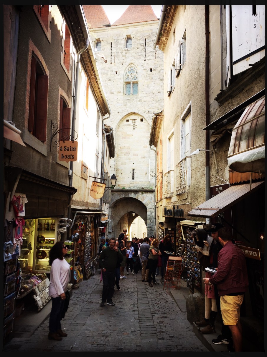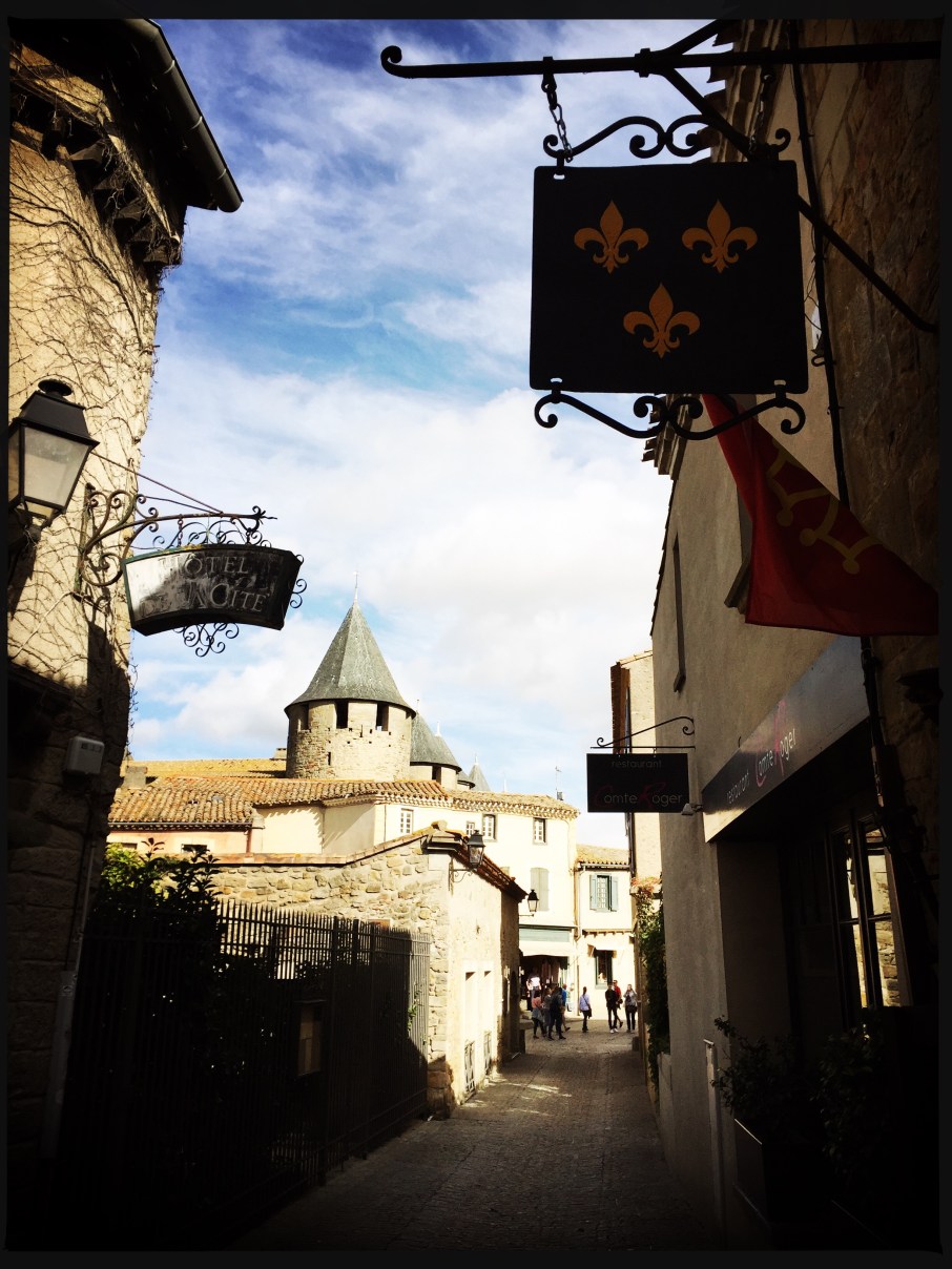 Da es schon später war und wir noch einen Stellplatz finden mussten, war es nur ein kurzer Besuch. Wir fanden etwas nicht weit von der Stadt und am nächsten Morgen spazierten wir von dort noch einmal zur Festungsstadt. Unser kleiner Rennfahrer wollte unbedingt mit dem Laufrad fahren und stürzte natürlich kurz bevor es losgehen sollte auf dem Schotterplatz… da war die Laune natürlich erst einmal im Keller. Nach dem ersten Schreck konnten wir aber doch noch in Richtung La Cité starten. Wir versuchten noch etwas mehr von der Stadt zu entdecken und fanden auch ein paar schöne Ecken. Die Sonne meinte es gut mit uns, es war nur etwas stürmisch.