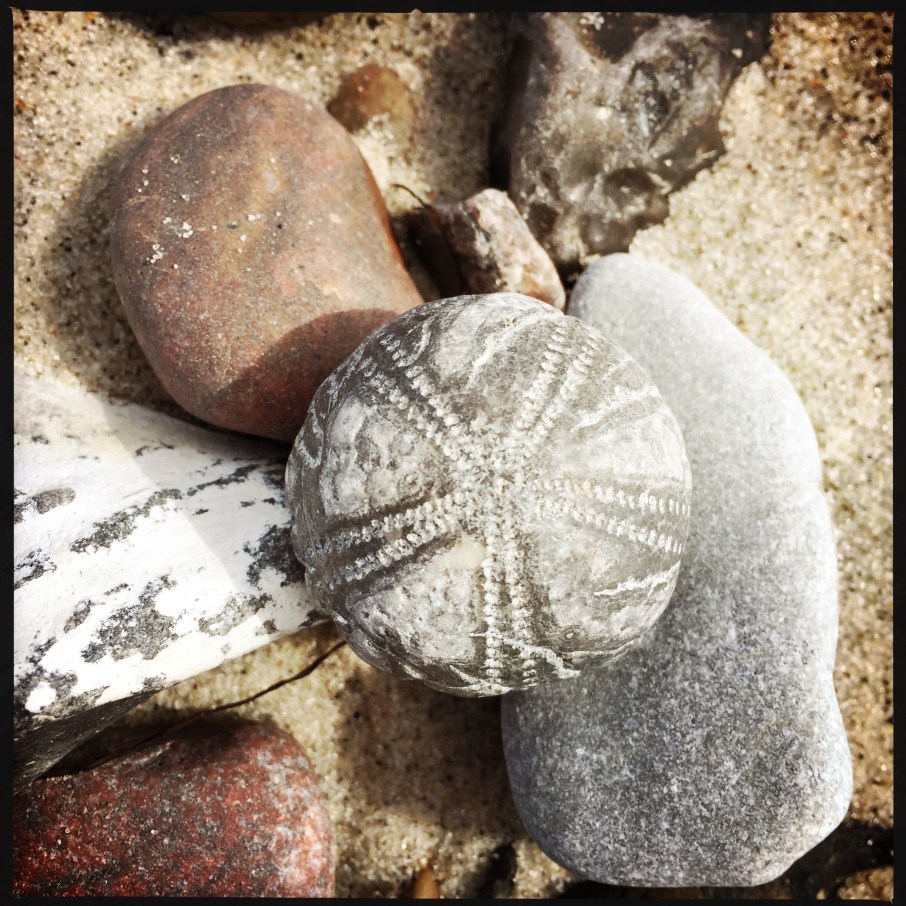 Danach fuhren wir nach Gulstav an die Südspitze von Langeland, um uns die Klippen und die dort lebenden Wildpferde anzuschauen. Leider war das erste was wir sahen ein totes Wildpferd 😬😢 aber wir durften dann auch noch den lebendigen Rest der Herde entdecken und beobachten. Beim Steine sammeln am Strand hatten wir dann richtig Glück und haben einen versteinerten Seeigel gefunden 🤩 Endlich war die Suche mal erfolgreich. Sobald es Steine oder Muscheln am Strand gibt, sieht man mich eh nur noch mit auf den Boden gehefteten Blick auf der Suche nach irgendwelchen Schätzen. 😂