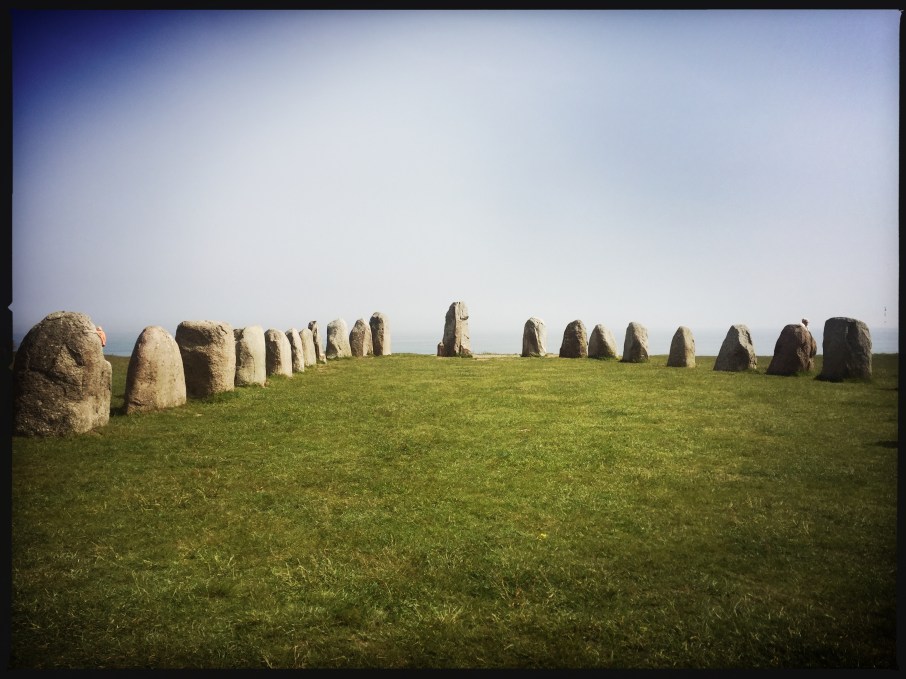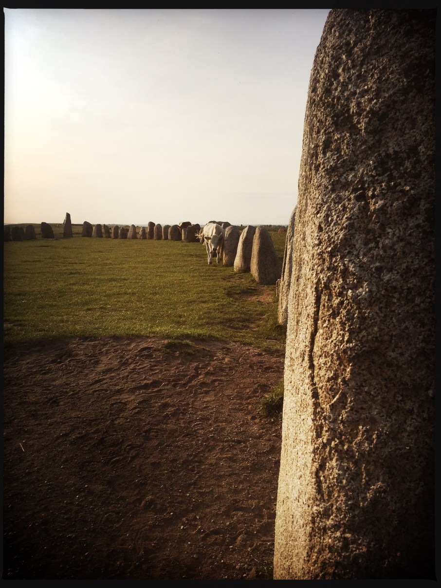 Unser erstes Ziel war die Stadt Ystad, das Zuhause der Romanfigur Kommissar Wallander. Ein nettes kleines Städtchen mit alten Fachwerkhäusern an der Südspitze von Schweden. Hier haben wir uns auf unsere Drahtesel geschwungen und die Stadt damit erkundet. Etwas außerhalb von Ystad befindet sich Ales Stenar, eine der größten erhaltenen Schiffssetzungen Skandinaviens auf einer Klippe über der Ostsee. Solch eine bootumrißförmige Steinsetzung markiert oft Brand- oder Urnengräber und kann entweder auf die Wikingerzeit oder sogar auf die Zeit vor Chr. Geburt datiert werden. Die Bedeutung dieser Steine konnte jedoch noch nicht 100% geklärt werden. Es gibt Theorien, dass es eine Kultstätte gewesen sein könnte, ein keltischer Sonnenkalender oder ein Orientierungspunkt an Land für die Seefahrer. Beeindruckend und geheimnisvoll ist es auf jeden Fall. Wir waren noch einmal in der Abenddämmerung dort, da wurde „das Schiff“ dann von den grasenden Kühen bevölkert. 😂