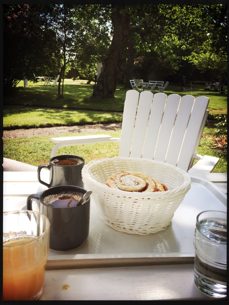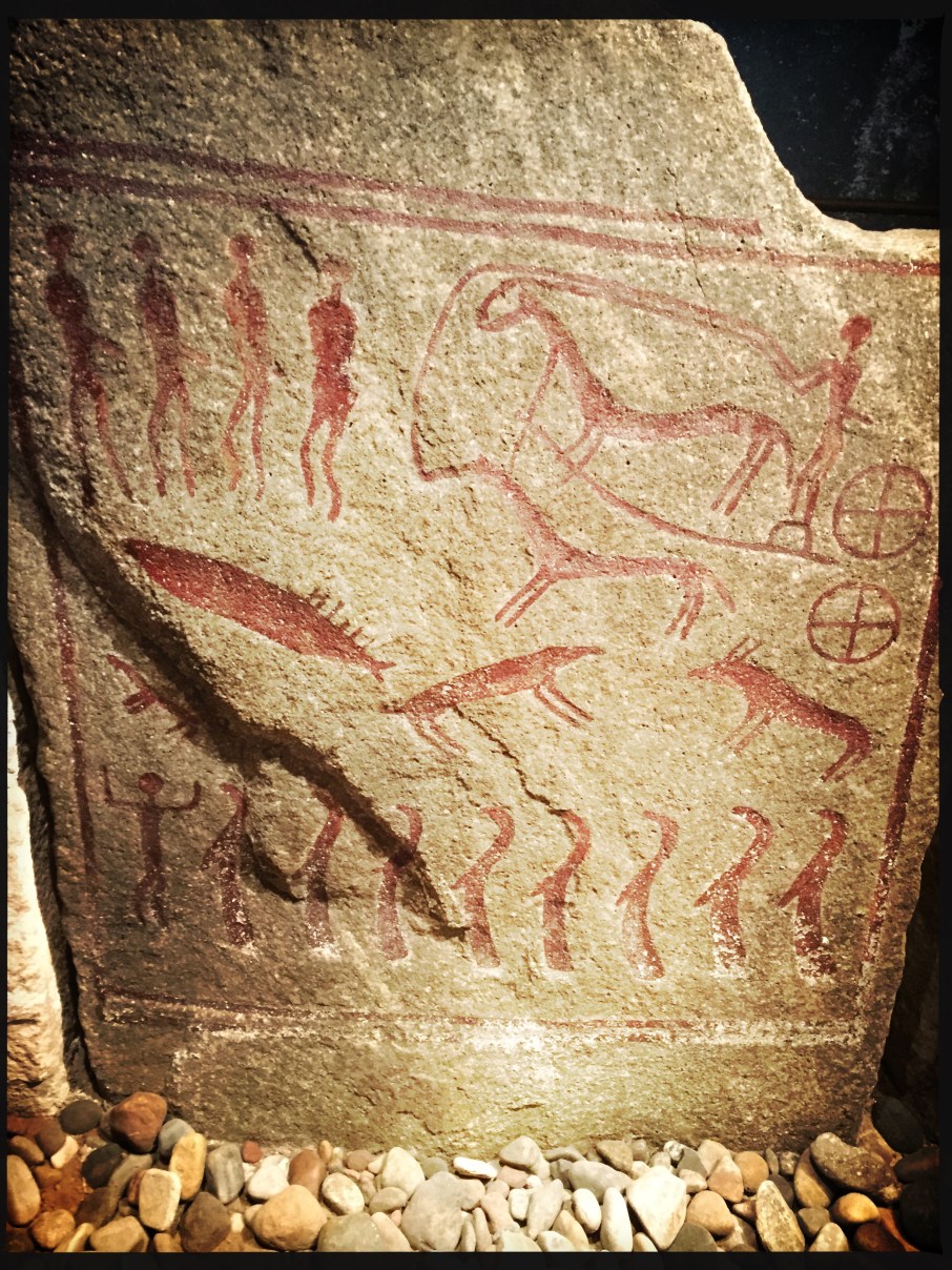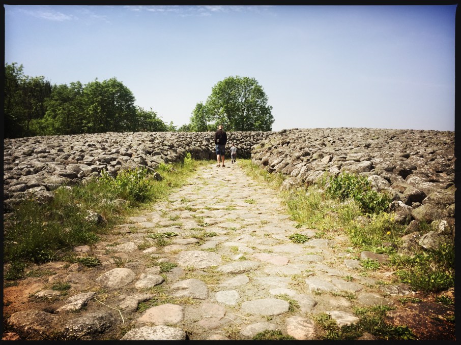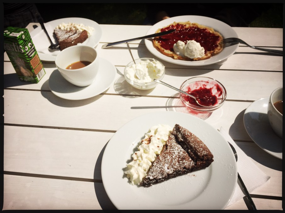 Weiter ging es am nächsten Tag in die kleine Stadt Kivik zum sogenannten Königsgrab. Das Grab befindet sich auf dem Gelände eines gemütlichen kleinen Kaffees, wo man herrlich im Garten unter Kastanien sitzen und schwedische Leckereien genießen kann. Vor der Stärkung besichtigten wir aber noch das Grab. Es war ein riesiger Steinhügel mit 72 m Durchmesser, in dessen Mitte eine Kammer angelegt war, worin die Steinplatten mit Zeichnungen als Grabstätte dienten. Keiner weiß aber so genau wie das Grab wirklich ausgesehen hat und ob wirklich ein König dort begraben lag, denn leider wurde das Grab vor langer Zeit geplündert und nur von seiner Größe her ging man davon aus, dass hier jemand ganz besonderes begraben wurde. Nach soviel Geschichtsunterricht gab es erst mal leckeren schwedischen Schokokuchen mit dem schönen Namen Kladdkaka, Waffeln mit Himbeeren 😋 und Kaffee soviel man möchte. 😅 Das ist hier in Schweden überall anzutreffen, dass man sich Kaffee nachschenken kann soviel man möchte.