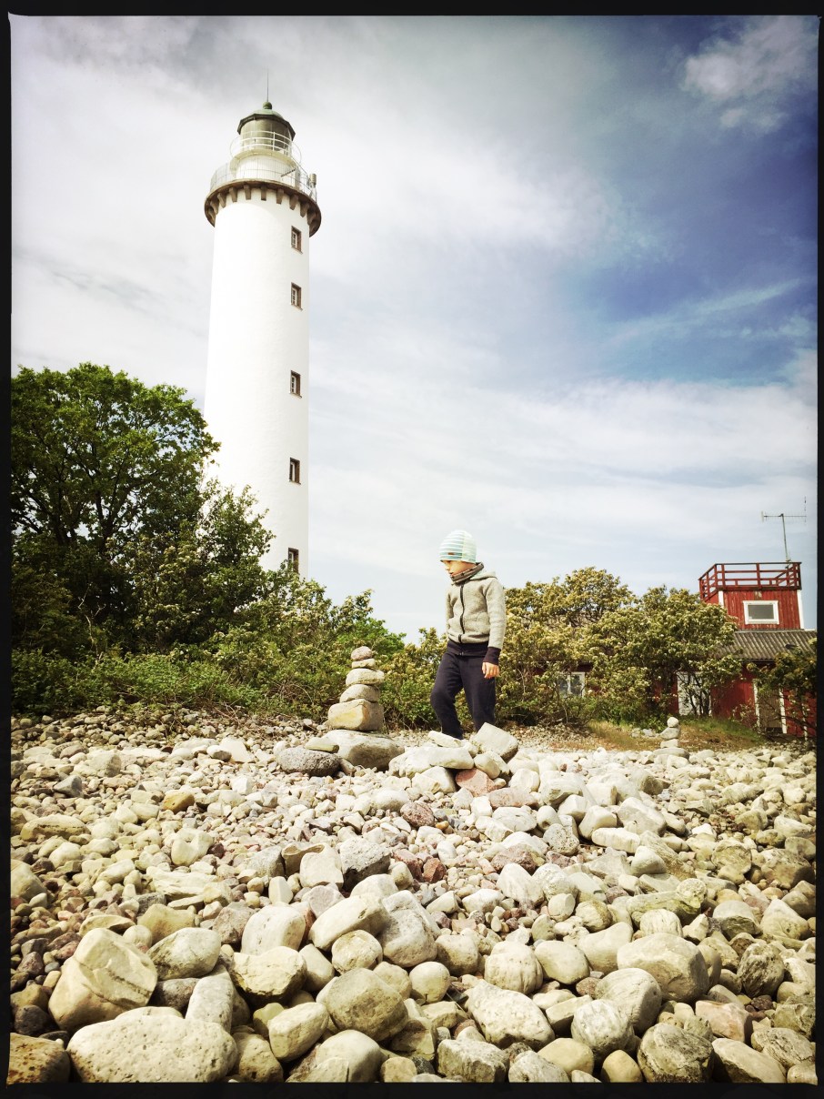 Daraufhin statteten wir dem Leuchtturm an der Nordspitze einen Besuch ab. Er hört auf den Namen „Långer Erik“. Da der Leuchtturm noch geschlossen war, bauten wir Steintürme am Strand und genossen den Ausblick aufs Meer. Nach dem Aufstieg picknickten wir im Garten des Leuchtturmwärters und setzten dann unsere Fahrt fort.