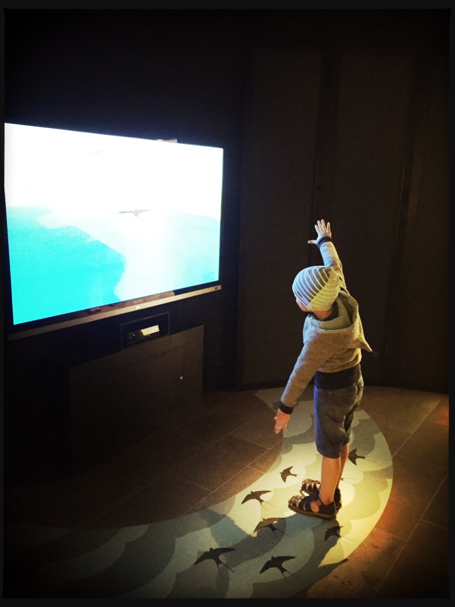 Über Borgholm fuhren wir Richtung Süden durch die Stora Alva, eine der letzten naturbelassenen Karstlandschaften in Europa. Da sie nicht landwirtschaftlich genutzt werden kann, dient sie vor allem als Weideland. Am südlichen Zipfel befindet sich der Leuchtturm „Långer Jan“, von dem man die sich in der Sonne ruhenden Seerobben beobachten kann. In dem sehr schönen kleinen Museum, konnte man sich über die Stora Alva und die heimischen Tiere informieren und für Felix gab es ein besonderes Highlight. Er durfte als Schwalbe durch die Luft fliegen ☺️ Hier wurde den Kindern der Weg der Zugvögel nahe gebracht. Man musste richtig mit den Armen/Flügeln schlagen und verschiedene Abenteuer auf dem Weg bestehen.